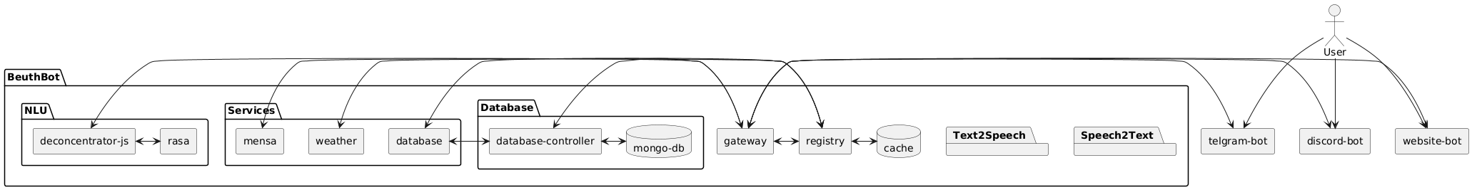 BeuthBotNLUServicesDatabasegatewayregistrycachedeconcentrator-jsrasaweathermensadatabasedatabase-controllermongo-dbText2SpeechSpeech2TextUsertelgram-botdiscord-botwebsite-bot